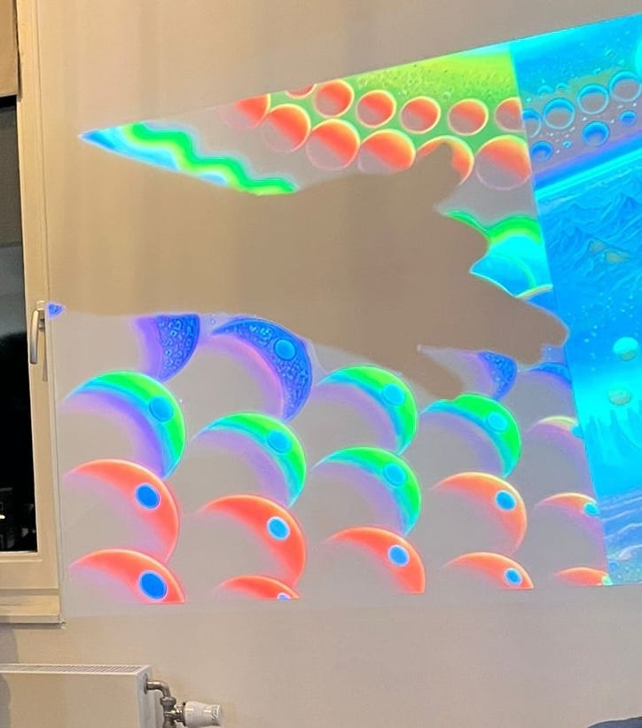 For example you cannot see shadow of a red light filter, with a blue light?!